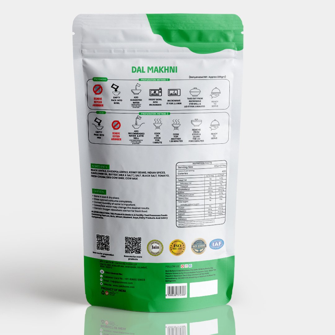 BLACK LENTILS, CHICKPEA LENTILS, KIDNEY BEANS, INDIAN SPICES, SUNFLOWER OIL, BUTTER ( MILK & SALT ), SALT, BLACK SALT, TOMATO, FRESH CREAM, DESI COW GHEE, COW MILK