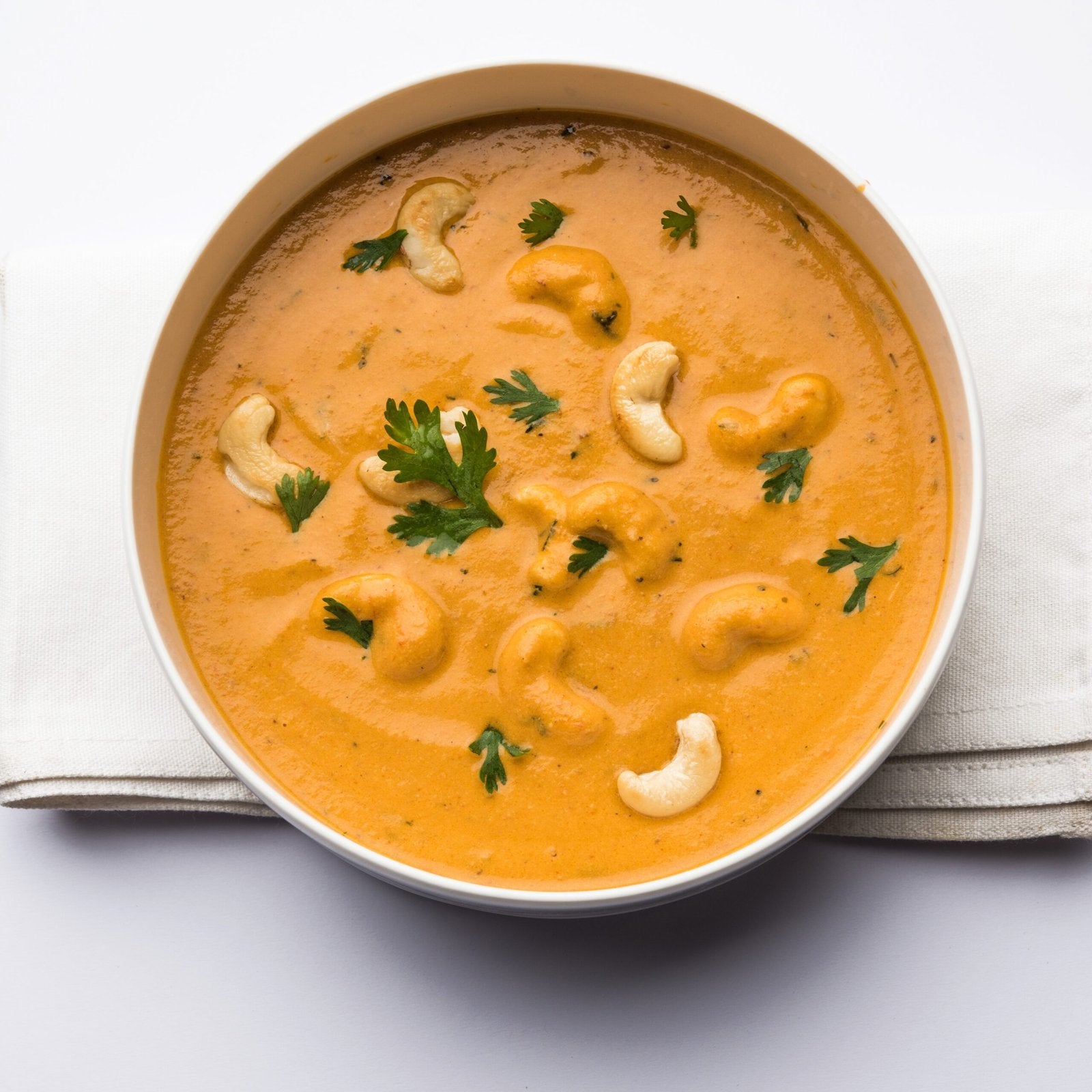 ROASTED CASHEW NUTS ( 25 % )ONION PASTE ( ONION& WATER- 30 % ), TOMATO PUREE ( TOMATO& WATER- 40 % ), SPICES ( CUMIN, TURMERIC, CORIANDER, RED CHILLI, GARAM MASALA POWDER- 4 % ), MILK ( 2 % ), GINGER PASTE ( GINGER & WATER- 3 % ), GARLIC PASTE ( GARLIC & WATER- 4 % ), SALT, BLACK SALT, CASHEW NUT PASTE ( CASHEW NUT & WATER- 4 % ), WATER MELON SEED PASTE ( WATER MELON SEEDS & WATER-3 %), BLACK CARDAMOM, CINEMON, GRREN CARDAMOM, CLOVE, BAY LEAF, CREAM, BUTTER.
