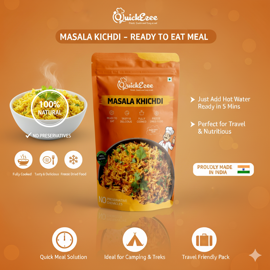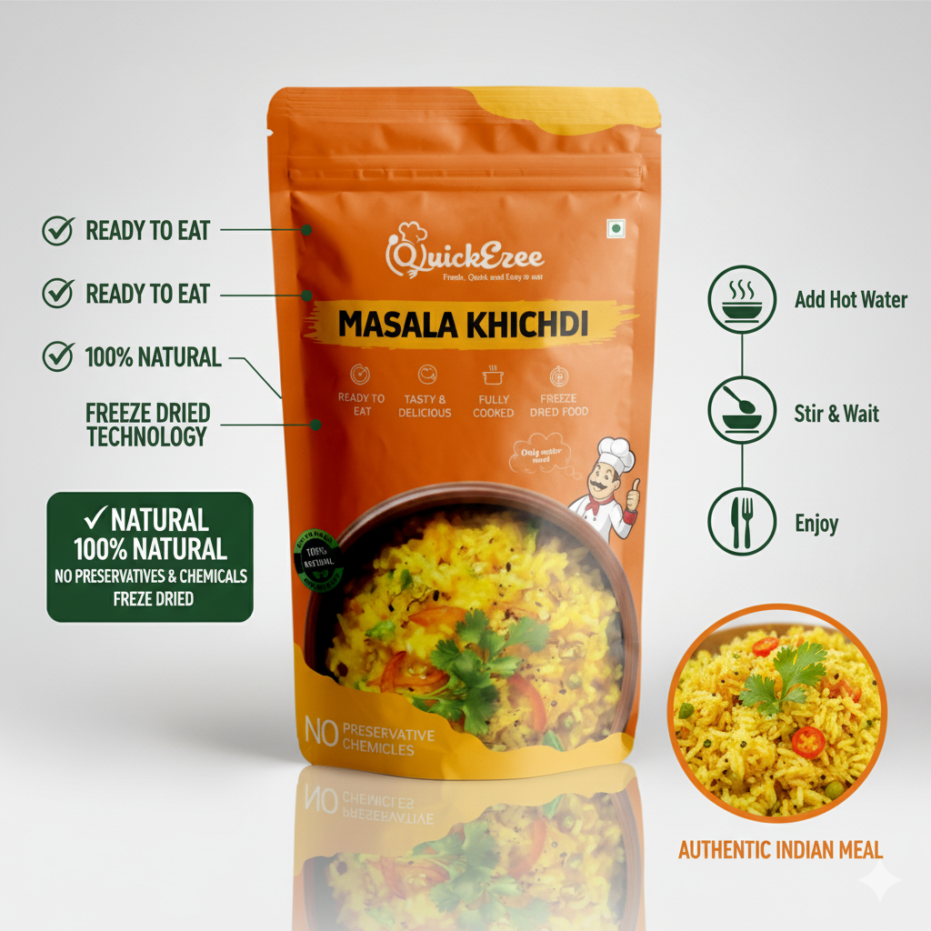 Indulge in the aromatic and wholesome goodness of Masala Khichadi, a traditional Indian comfort food turned into a complete, ready-to-eat meal! This dish combines rice and lentils (dal) cooked with a fragrant blend of spices, turmeric, and fresh vegetables, providing a flavorful and nourishing experience that is both light and satisfying.