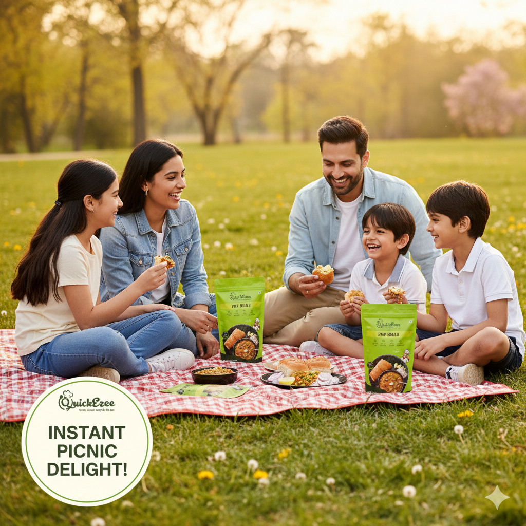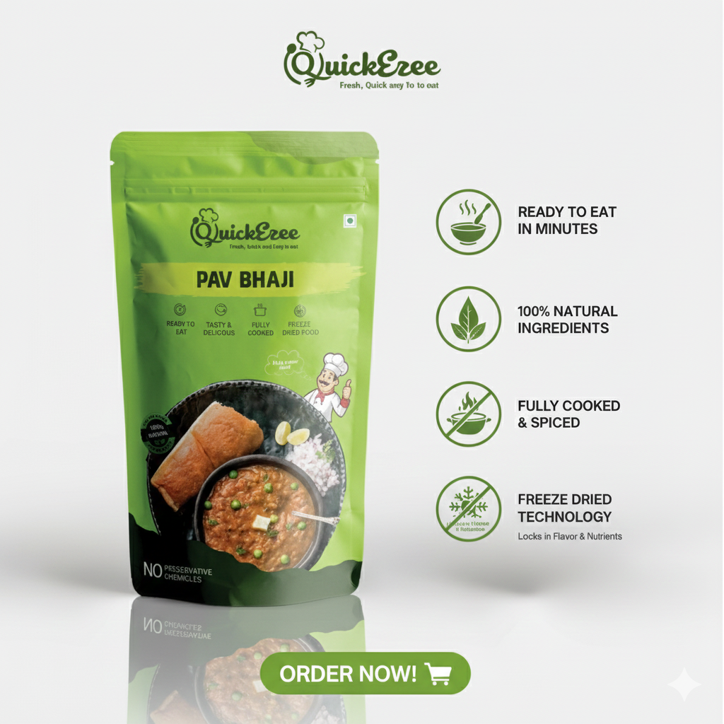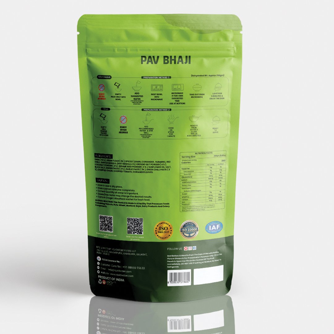QuickEzee Bombay Pav Bhaji: Instant Mumbai Street Food. Deliciously spiced, buttery bhaji. Ready-to-eat comfort, zero cooking required. Crave that spicy, tangy bhaji? This ready-to-eat favorite is perfectly seasoned and ready in minutes. Just heat, serve, and devour! Experience the authentic street flavor of Mumbai! Rich, buttery vegetable mash, ready to pair with your pav. Instant Pav Bhaji magic!