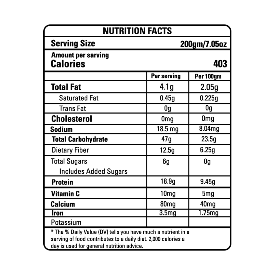 POTATO, ONION, WHITE PEAS, GREEN PEAS, REFINED WHEAT FLOUR,YELLOW LENTILS, SPICES ( CUMIN, TURMERIC, CORIANDER, RED CHILLI, GARAM MASALA POWDER - 2 % ) , SUNFLOWER OIL, GREEN CHILLI PASTE ( GREEN CHILLI & WATER- 1 % ),GARLIC, GINGER, LEMON JUICE, JAGGERY, MINT LEAVES, TAMARIND, CHAT MASALA ( 1 % ) DRY MANGO POWDER ( 1 % )