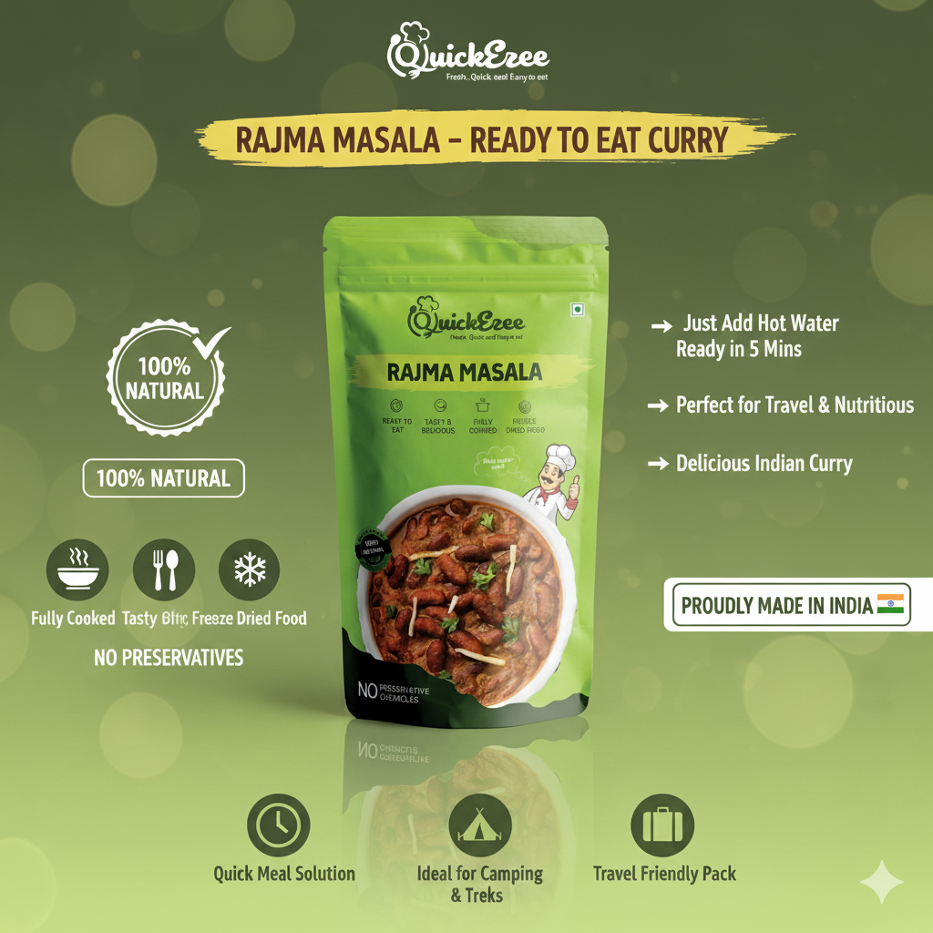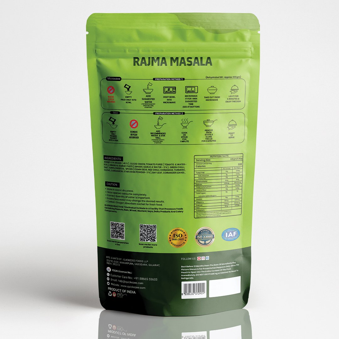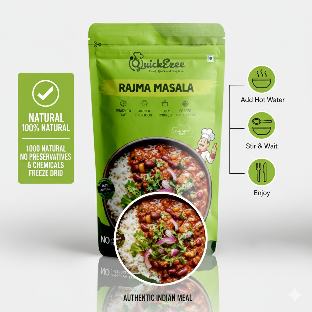 QuickEzee Rajma Masala: Instant Home-Style Goodness. Rich, perfectly spiced Rajma Masala. Ready-to-eat, wholesome, and delicious. Authentic North Indian flavor in minutes! Deliciously spiced and tender kidney beans. Ready-to-eat convenience, maximum taste. Your favorite Punjabi comfort food, ready instantly! Creamy kidney beans simmered in a rich, tangy gravy. Just heat and enjoy.