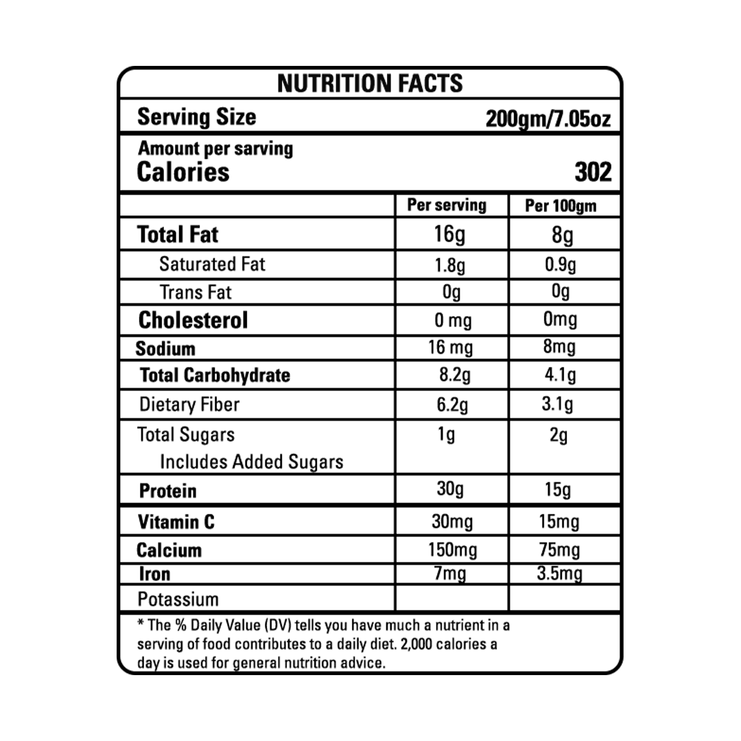 SOYA CHUNKS ( 75 % ), CHOPPED GREEN CHILLI, CHOPPED TOMATO, CHOPPED ONION, CHOPPED GINGER, CHOPPED GARLIC, CURRY LEAVES, CHOPPED GREEN GARLIC, CORIANDER LEAVES, CUMIN SEEDS, BUTTER ( 5 % ), SALT, SPICES ( CUMIN, RED CHILLI, TURMERIC, DRY MANGO, CLOVE, STAR ANISE, CINNAMON, CORIANDER POWDER - 3 % ), CLOVE, STAR ANISE, CINNAMON.